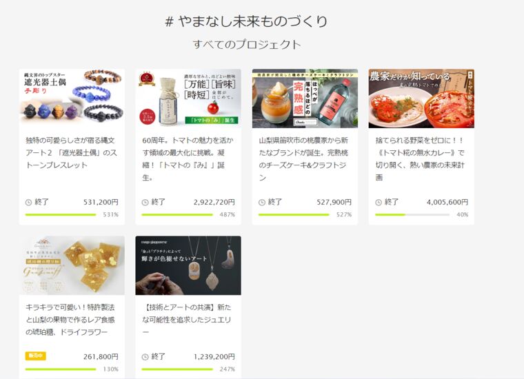 Makuake山梨県特設サイト「やまなし未来ものづくりプロジェクト」- 山梨県では、県内の「ものづくり」等を応援するため、クラウドファンディングサイトを活用し、新製品開発を支援します。