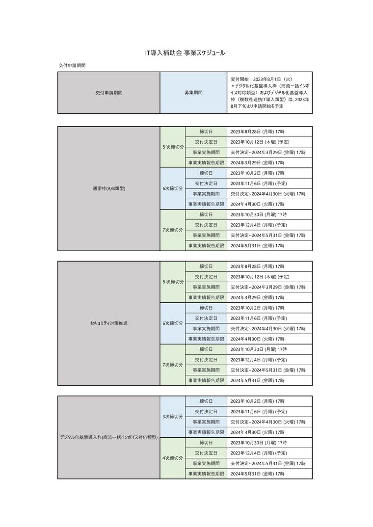 IT導入補助金の、8/1以降の交付申請スケジュールが公表となりました。
