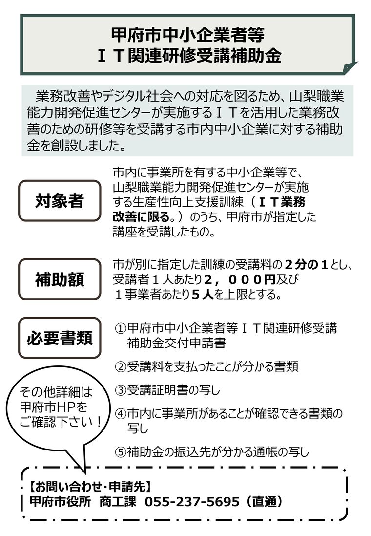 【甲府市】甲府市中小企業者等IT関連研修受講補助金