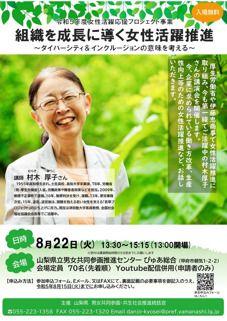 【山梨県】講演会「組織を成長に導く女性活躍推進」開催のご案内
