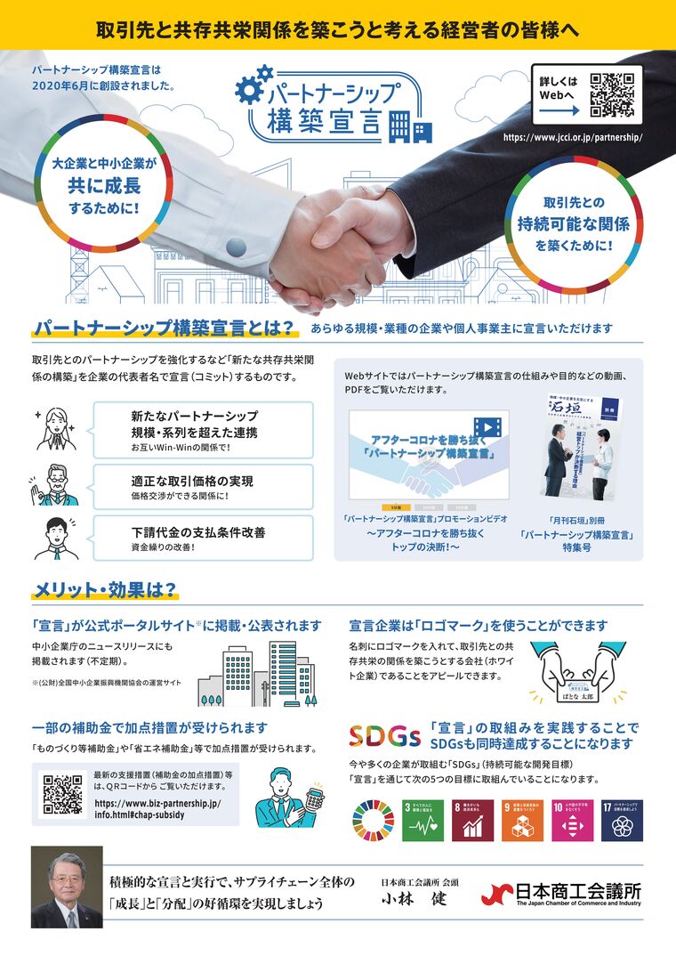 取引先との持続可能な関係を築く「パートナーシップ構築宣言」の宣言及び実行のお願い