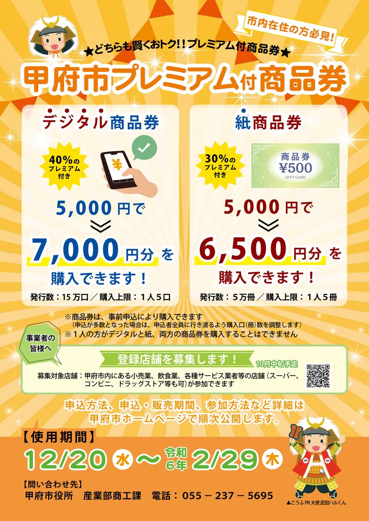 3. 【参加店募集中】甲府市プレミアム付き商品券 特設サイトが公開されました。【説明会も開催されます】