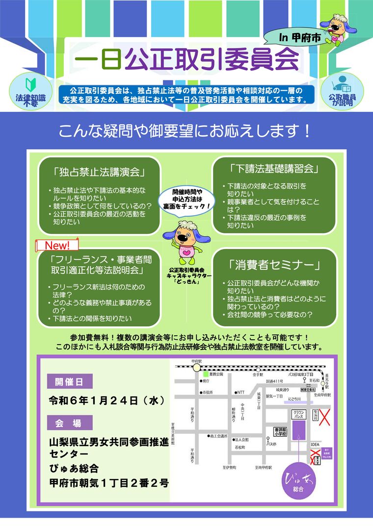 3. 【公正取引委員会】一日公正取引委員会 In 甲府市 開催のご案内
