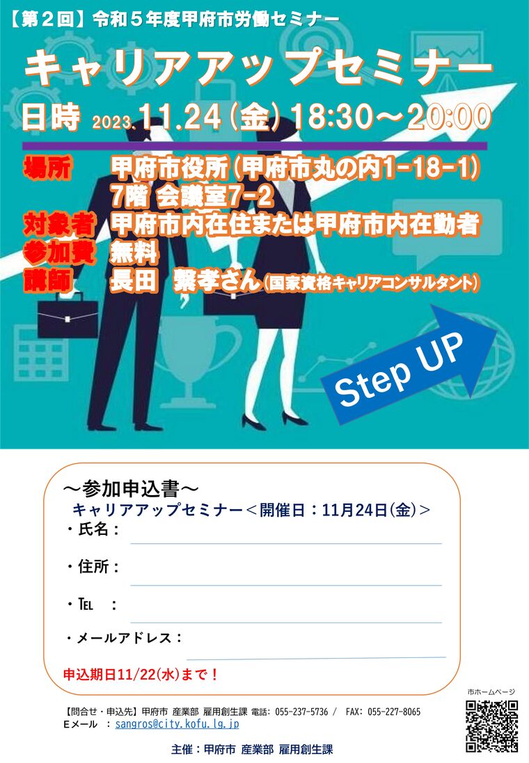 【飛び入り参加歓迎】甲府市労働セミナー「キャリアアップセミナー」開催のご案内【甲府市】