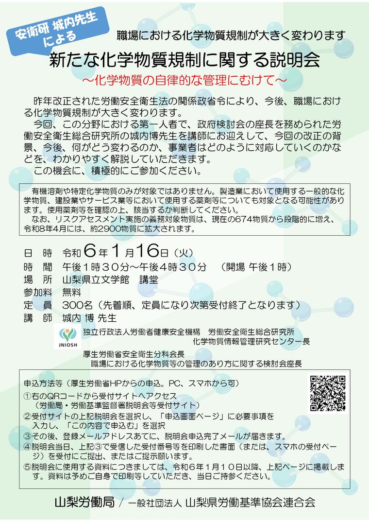 【山梨労働局】新たな化学物質規制に関する説明会の開催ついて