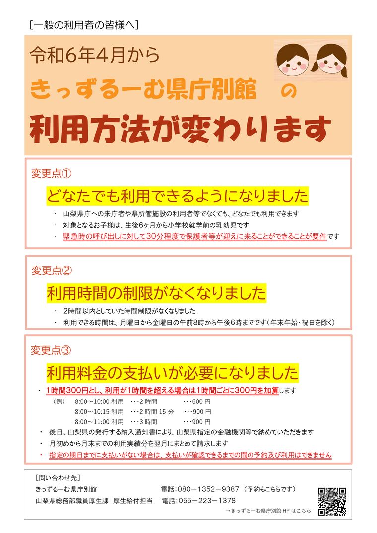 【山梨県庁】きっずるーむ県庁別館利用案内(利用方法が変わります)