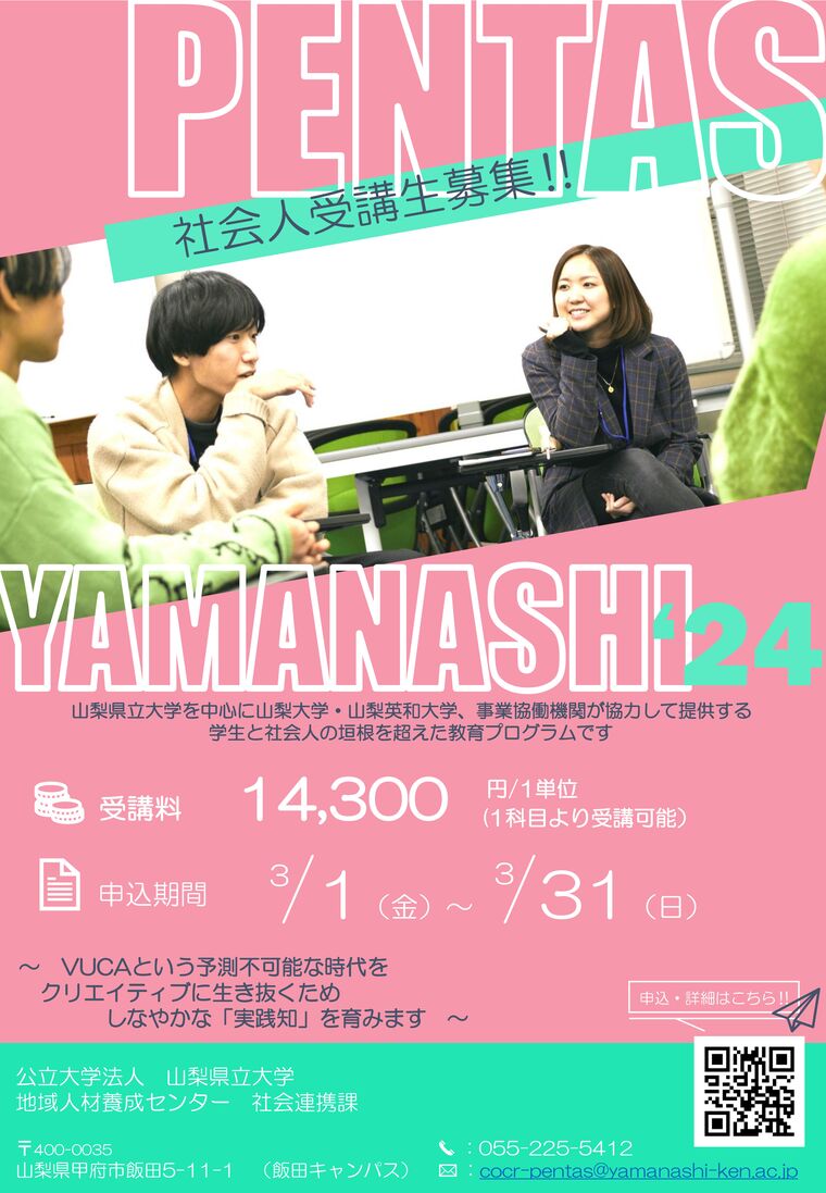 「VUCA時代の成長戦略を支える実践的教育プログラム(通称:PENTAS YAMANASHI)」を実施しております。
