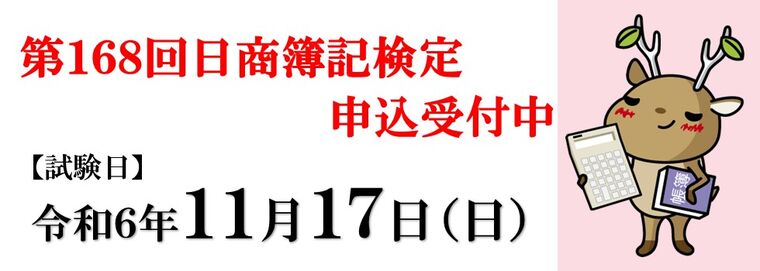 第168回簿記検定試験の申込受付を開始いたしました。