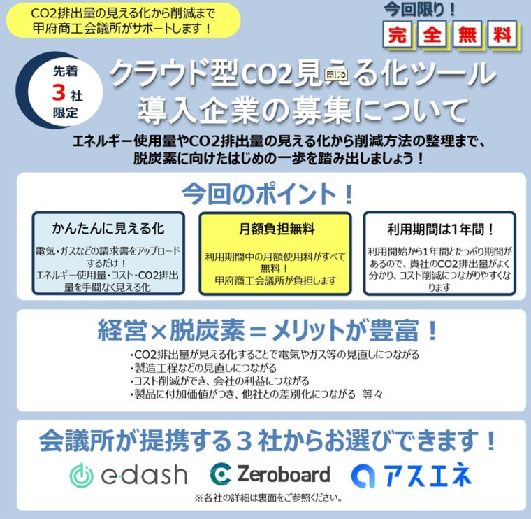 CO2排出量の見える化を、会議所が支援します! ~クラウド型CO2見える化ツール導入企業の募集について~