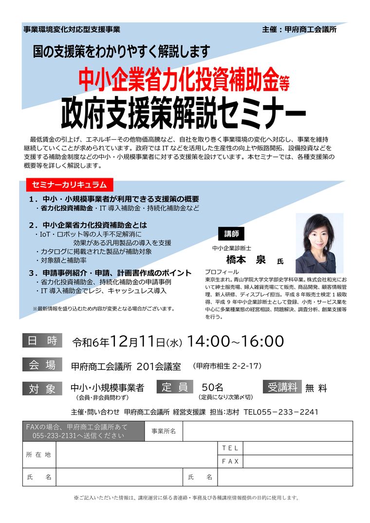 【12月11日】政府支援策解説セミナー(中小企業省力化投資補助金等) 開催のご案内