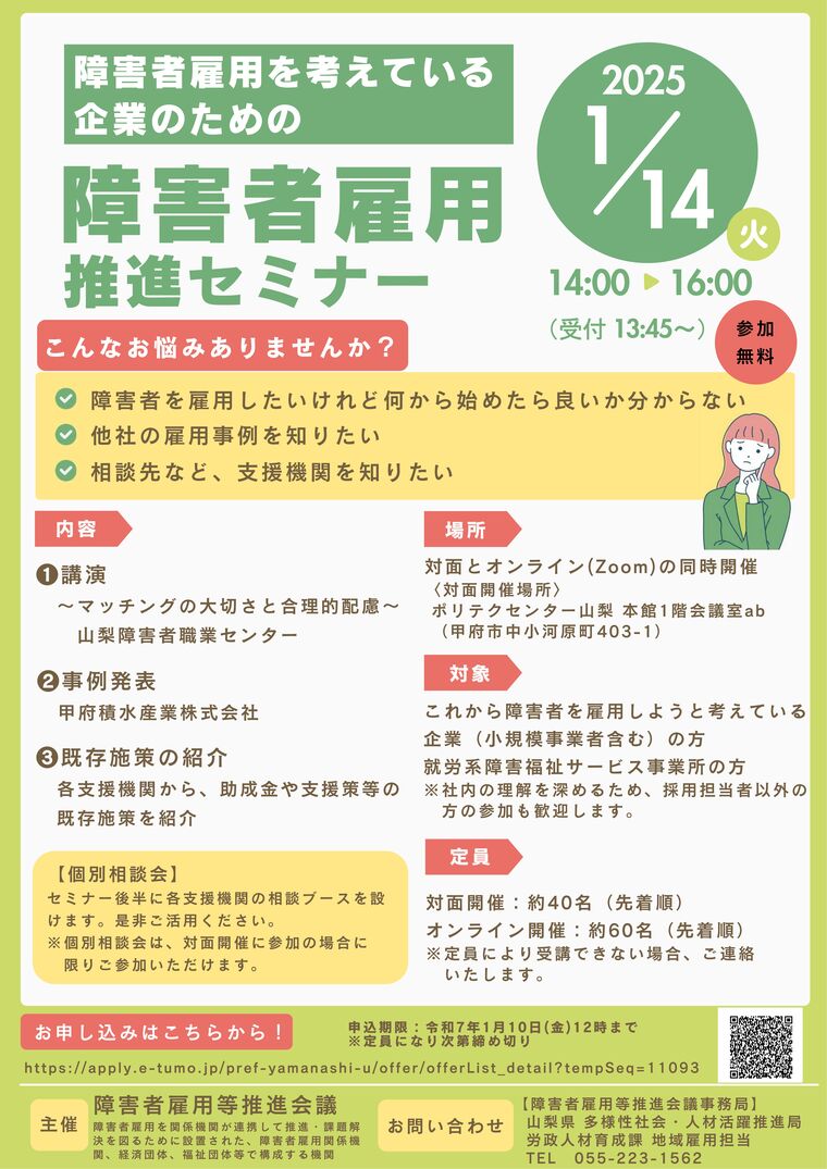 【山梨県】障害者雇用を考えている企業のための障害者雇用推進セミナー