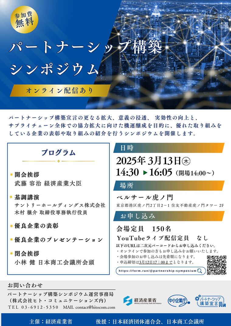 【経済産業省】パートナーシップ構築シンポジウム(3/13)の開催について