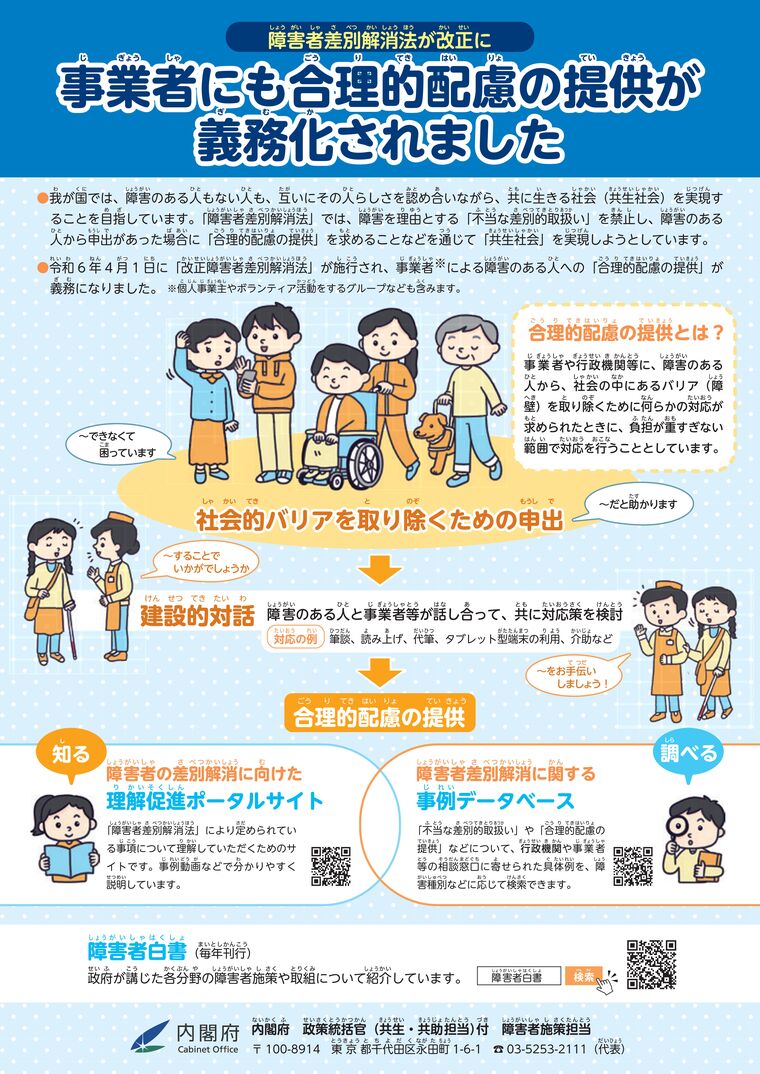 令和3年に障害者差別解消法が改正され、令和6年4月1日から「改正障害者差別解消法」が施行されました。