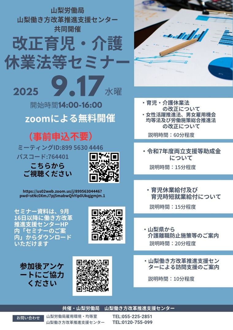 【山梨労働局】「改正育児・介護休業法等セミナー」の開催について