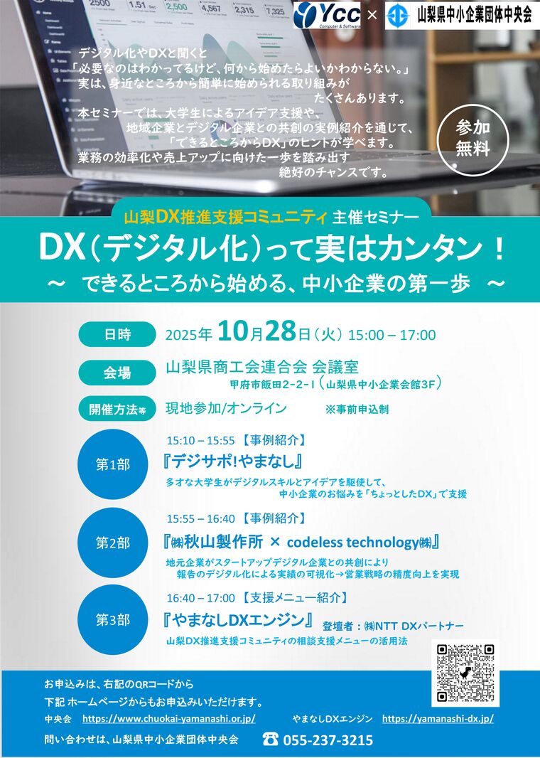 【10/28】セミナー「DX(デジタル化)って実はカンタン! ~ できるところから始める、中小企業の第一歩 ~」 の開催について
