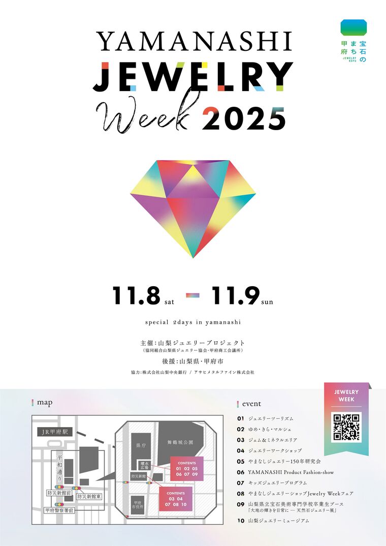 「宝石のまち甲府」を舞台に、ジュエリーの魅力を一挙に体験できる2日間のイベント、やまなし JEWELRY WEEK 2025が11月2日(土)・3日(日)に開催されます。