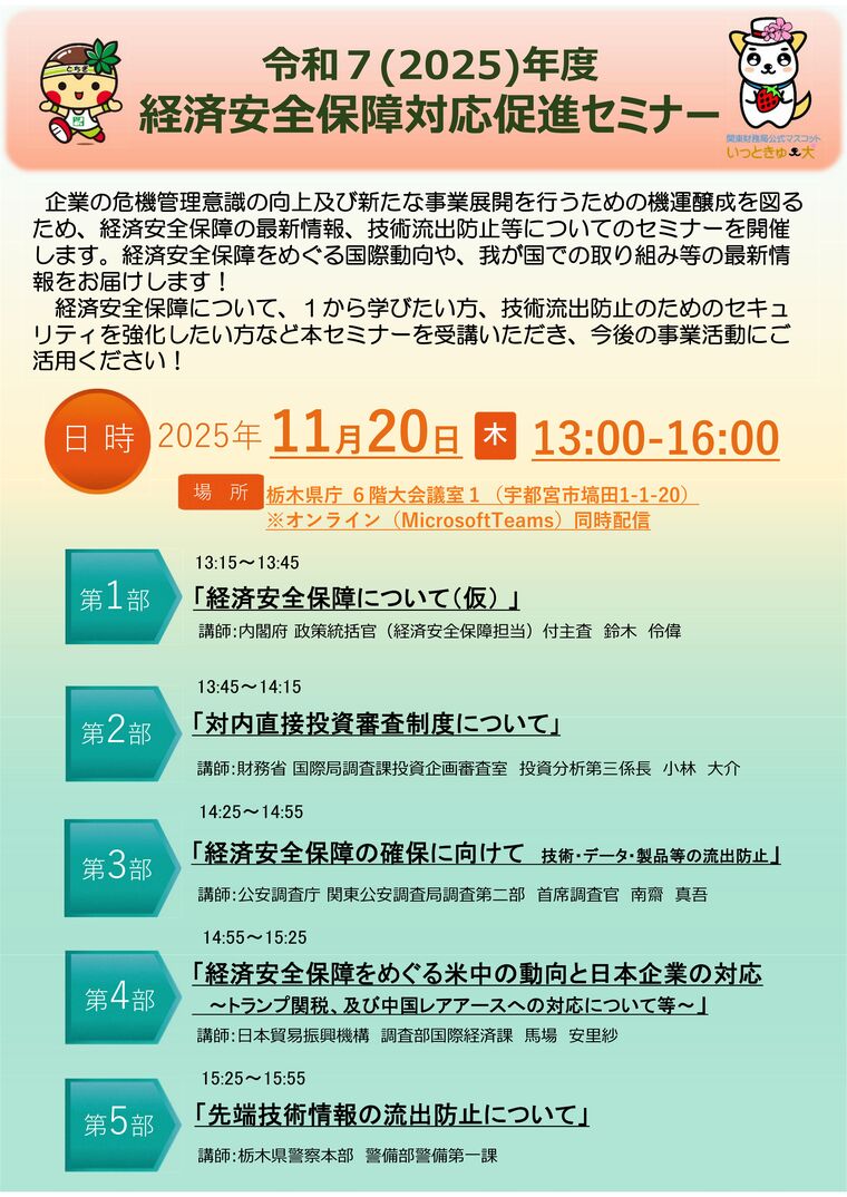 【オンライン視聴可】令和7(2025)年度 経済安全保障対応促進セミナー【関東財務局】