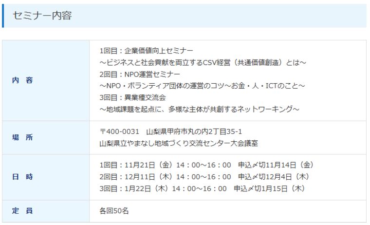 社会貢献活動にご興味のある企業や団体・個人の皆様に向けたセミナーを開催します。お気軽にご参加ください。