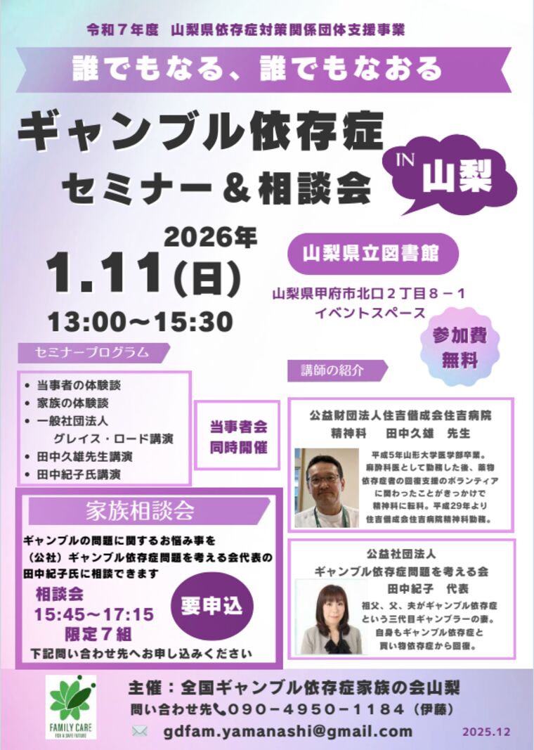 3. 【1/11】ギャンブル依存症セミナー&相談会