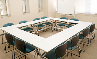 - 「会議室ご利用案内」の内容をご了承の上、申込書に必要事項を記入し、総務部までお申し込みください。後日、利用料をご請求いたします。