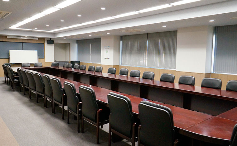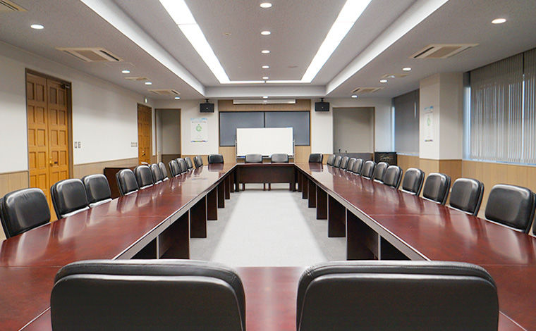 - 「会議室ご利用案内」の内容をご了承の上、申込書に必要事項を記入し、総務部までお申し込みください。後日、利用料をご請求いたします。