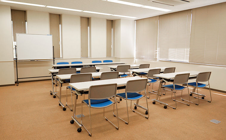 - 「会議室ご利用案内」の内容をご了承の上、申込書に必要事項を記入し、総務部までお申し込みください。後日、利用料をご請求いたします。