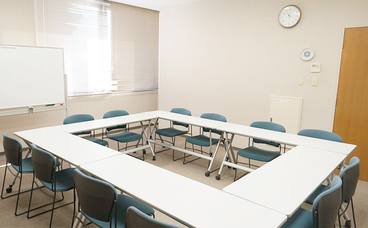 - 「会議室ご利用案内」の内容をご了承の上、申込書に必要事項を記入し、総務部までお申し込みください。後日、利用料をご請求いたします。