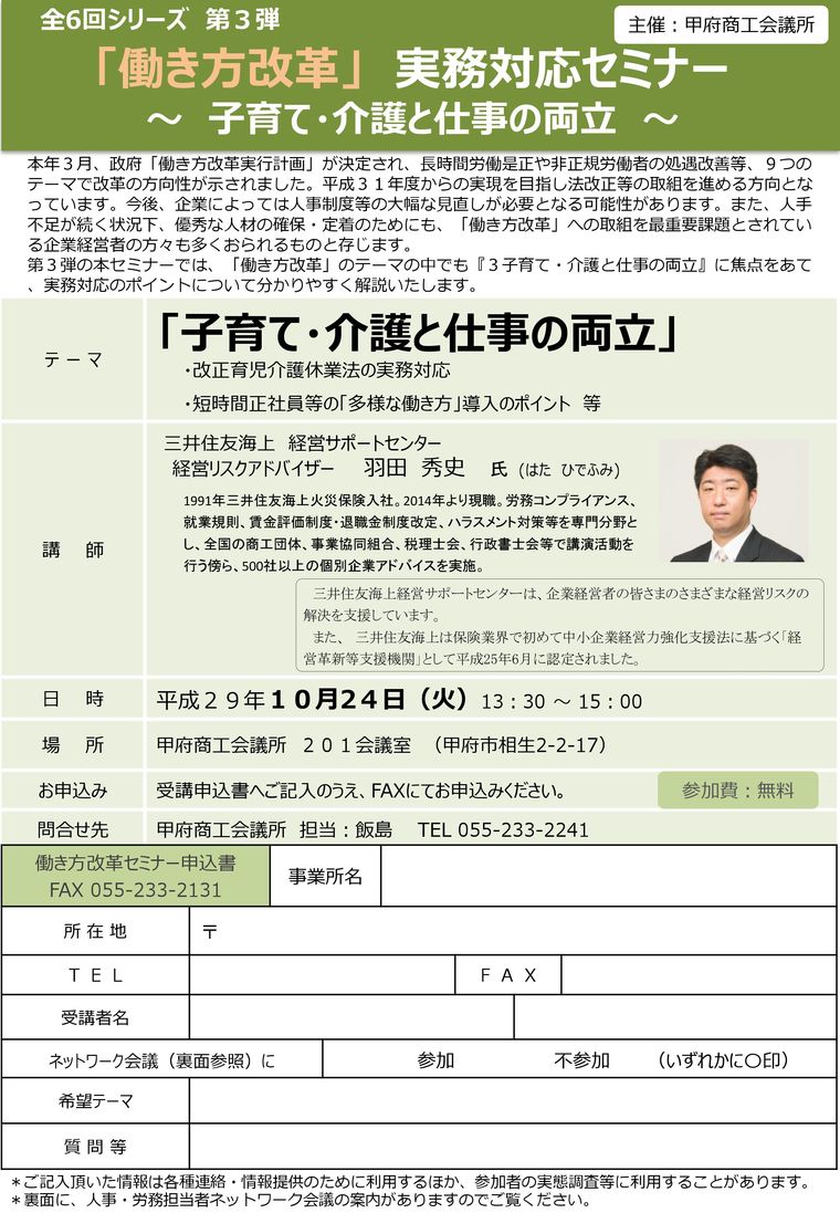 第3弾の本セミナーでは、「働き方改革」のテーマの中でも『3子育て・介護と仕事の両立』に焦点をあて、実務対応のポイントについて分かりやすく解説いたします。