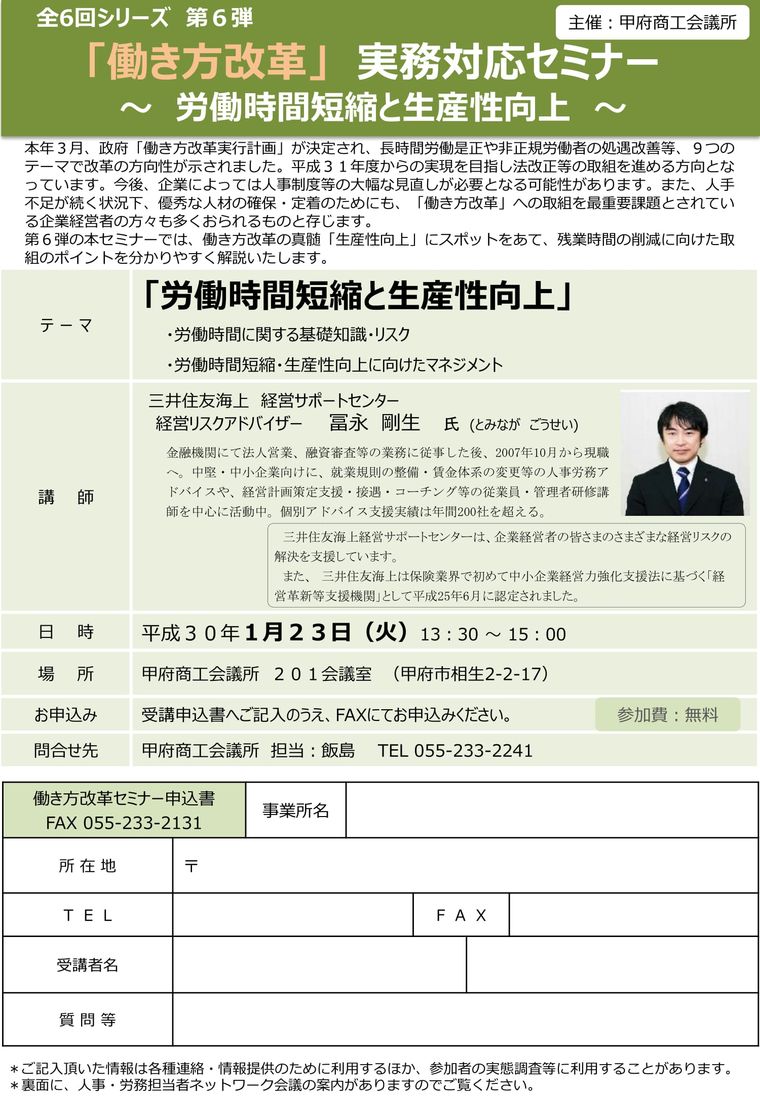 日時 2018-01-23 13:30~15:00 (終了) 場所 甲府商工会議所 講師 三井住友海上 経営サポートセンター