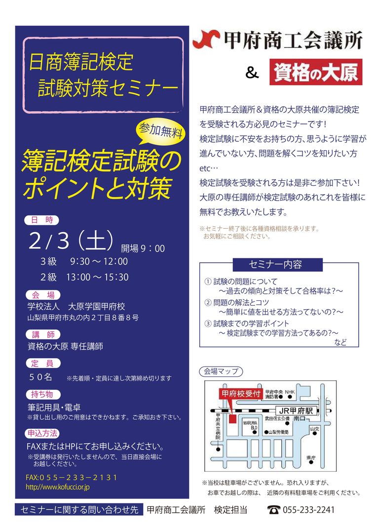 | 場所 | 学校法人 大原学園甲府校 |