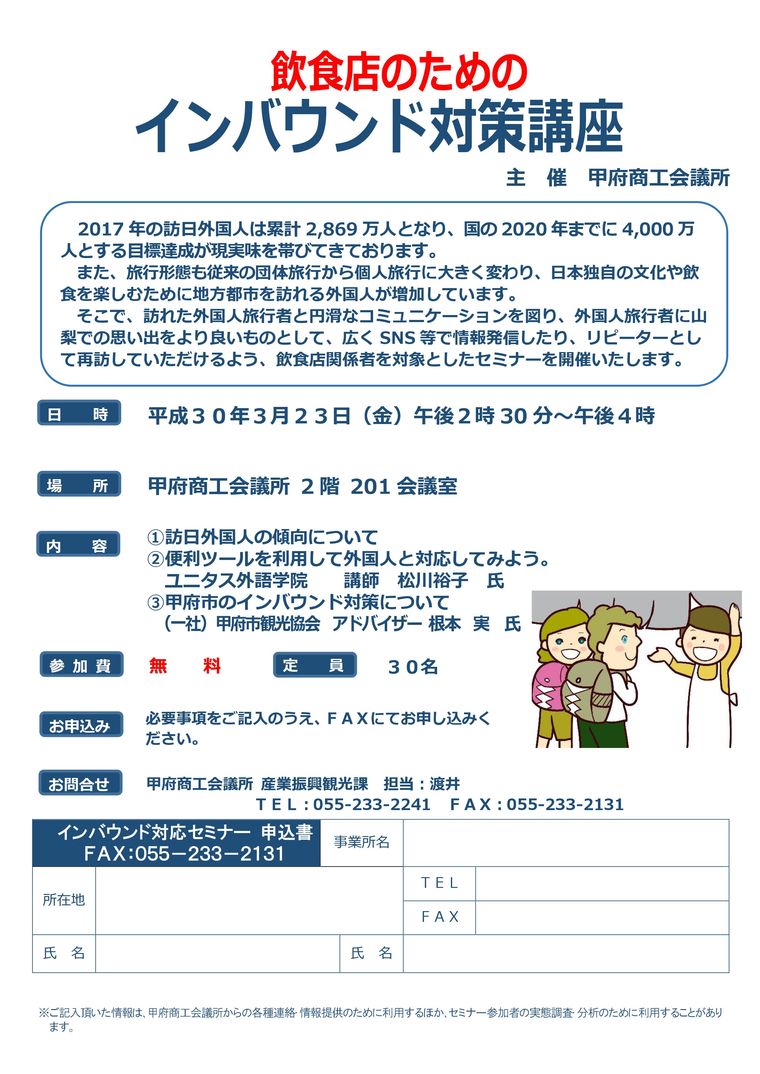 日時 2018-03-23 14:30~16:00 (終了) 場所 甲府商工会議所 2階 201会議室 講師 ユニタス外語学院 松川 裕子 氏