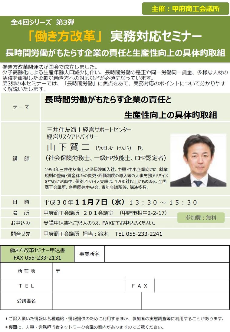 3. 「働き方改革」実務対応セミナー 長時間労働がもたらす企業の責任と生産性向上の具体的取組