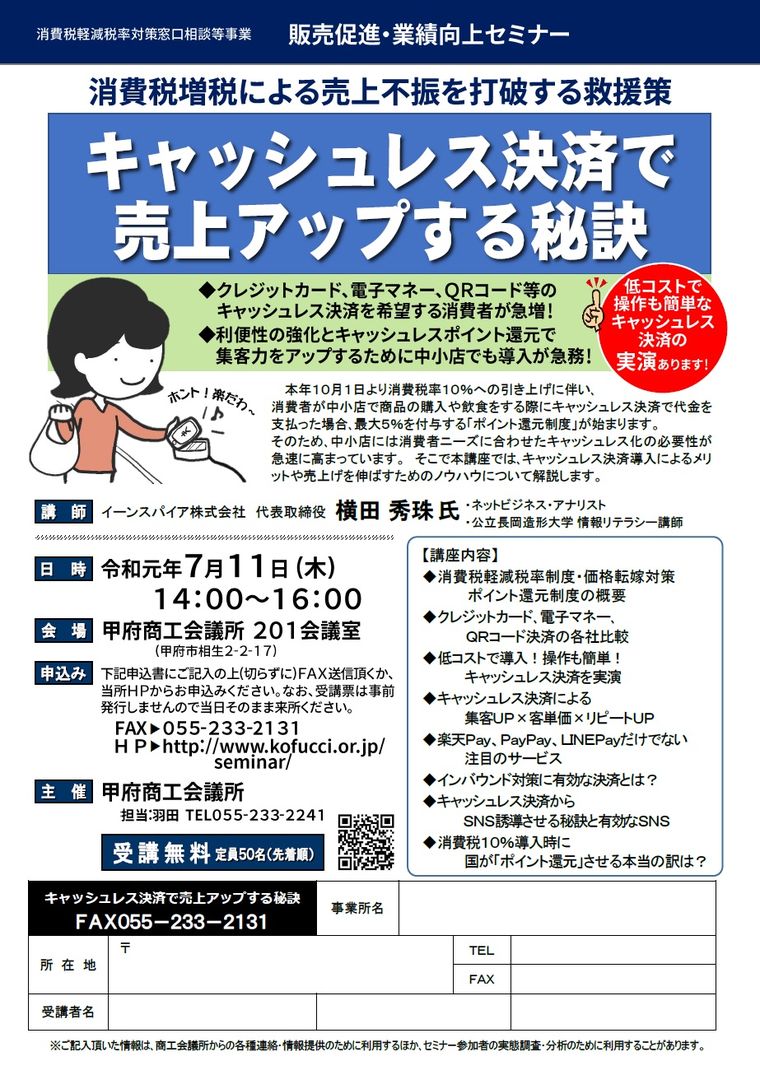 本セミナーでは、キャッシュレス決済のメリットや、導入により売上を伸ばすノウハウについて解説いたします。