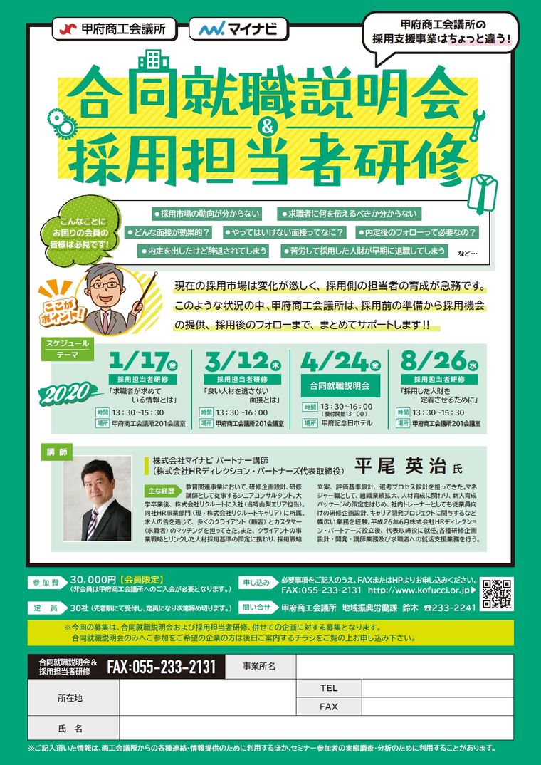 日時 2020-04-15 13:30~16:00 (終了) 場所 甲府商工会議所201 講師 株式会社マイナビ パートナー講師