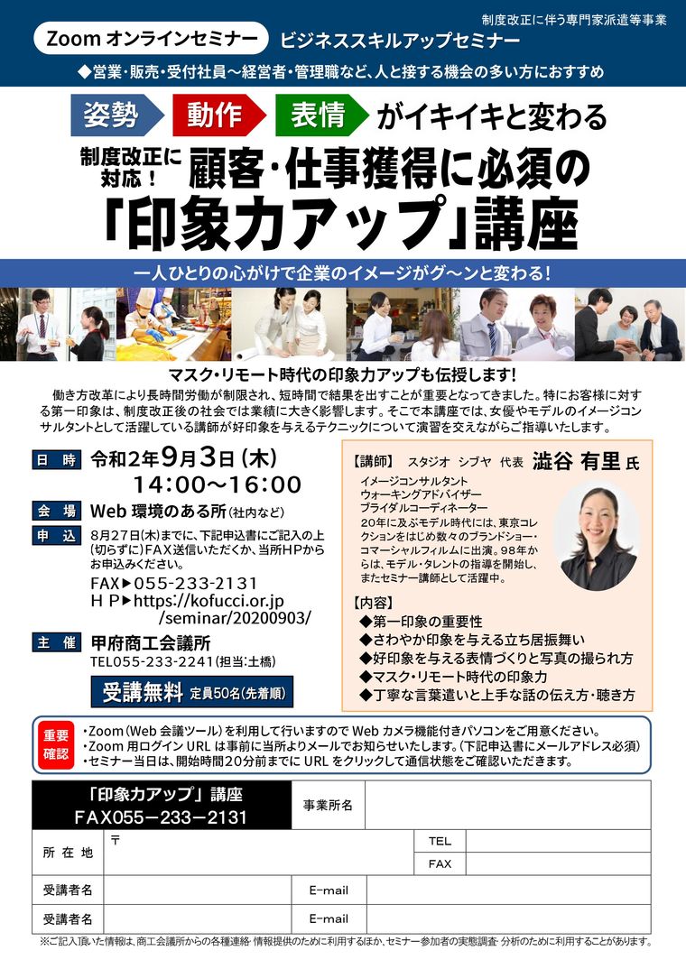 【WEBセミナー】顧客・仕事獲得に必須の「印象力アップ」講座