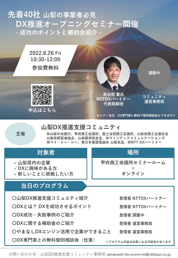やまなしDX推進支援コミュニティ オープニングセミナー DX推進成功のポイントと補助金紹介