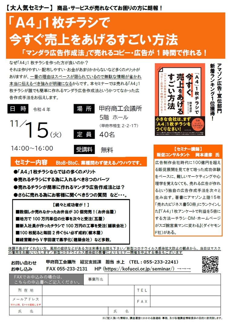 【受付終了】「A4」1枚チラシで 今すぐ売上をあげるすごい方法