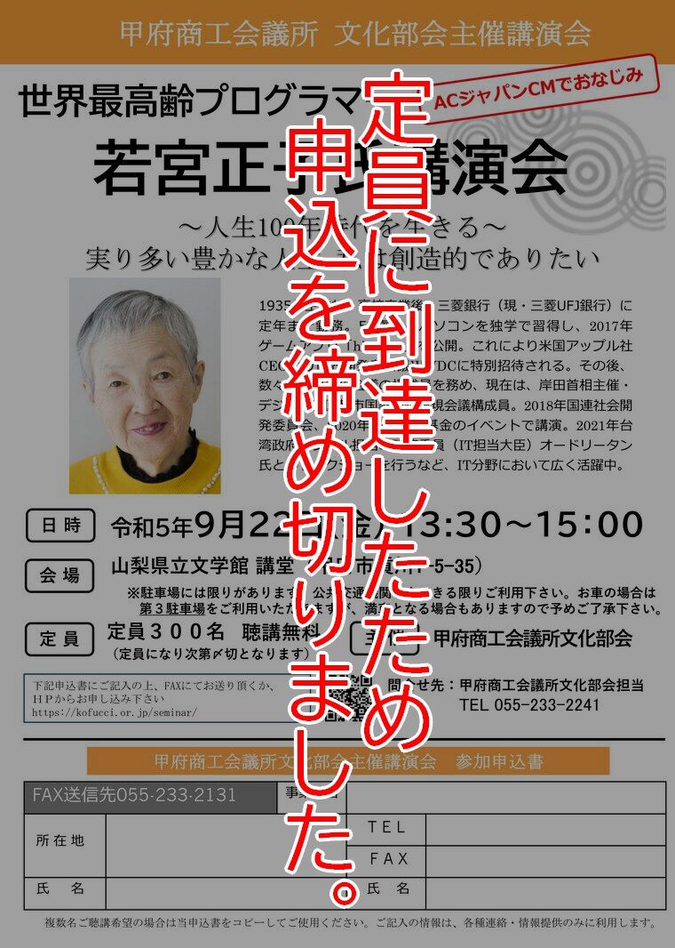 日時 2023-09-22 13:30~15:00 (終了) 場所 山梨県立文学館(甲府市貢川1-5-35) 講師 若宮 正子 氏 参加費 無料 分野 IT 申し込み方法 【お申込みフォーム】※リンク先Googleフォーム お問い合わせ