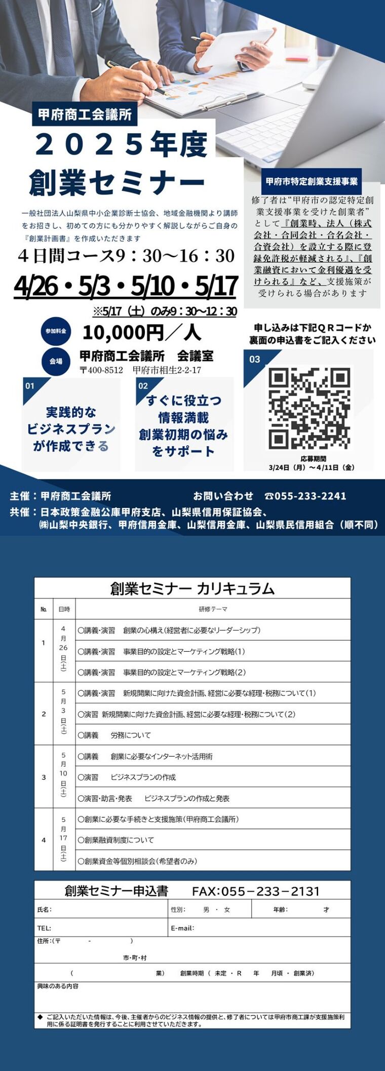 甲府商工会議所創業セミナー 受講者募集