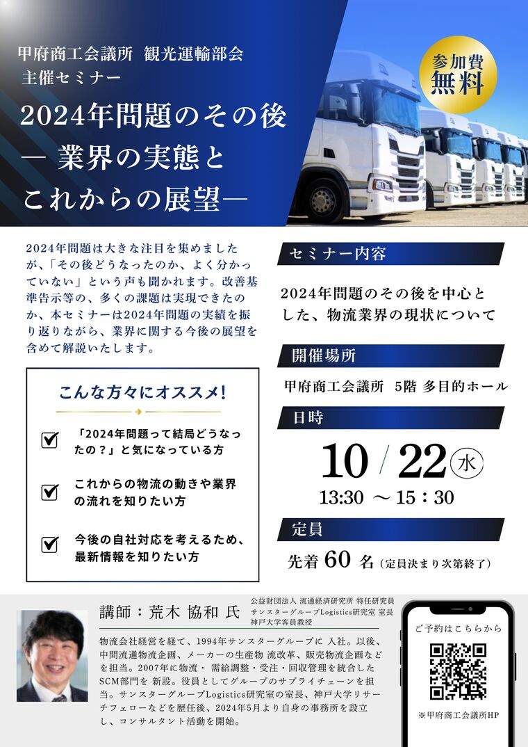 荒木 協和 氏参加費 無料 分野 運輸 申し込み方法 【お申込みフォーム】 お問い合わせ